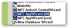 - 當然是透過最親愛的Project Wizard,建構個專案,這時要選擇MFC AppWizard(dll),